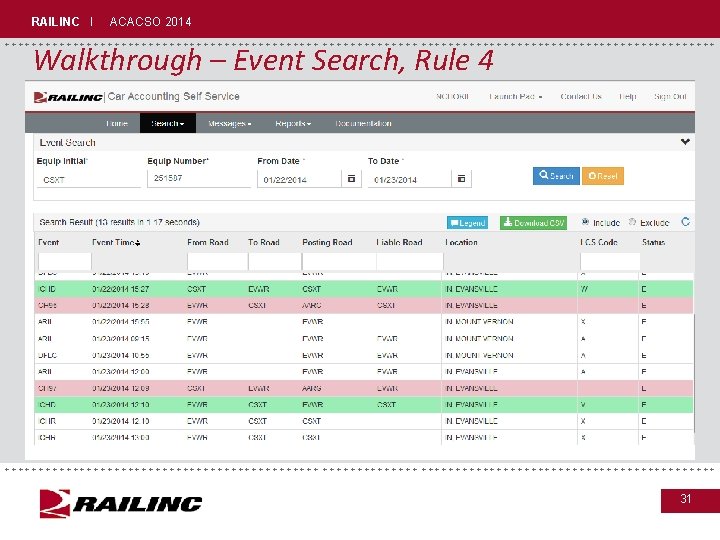RAILINC I ACACSO 2014 +++++++++++++++++++++++++++++ Walkthrough – Event Search, Haulage +++++++++++++++++++++++++++++ 23