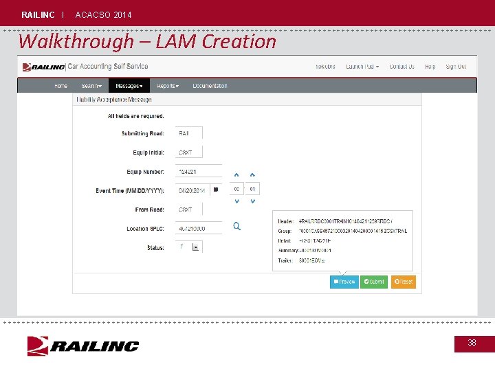 RAILINC I ACACSO 2014 Walkthrough – LAM Creation from Event Detail Screen ++++++++++++++++++++++++++++++++++++++++++++++ +++++++++++++++++++++++++++++++++++++++++++ 37