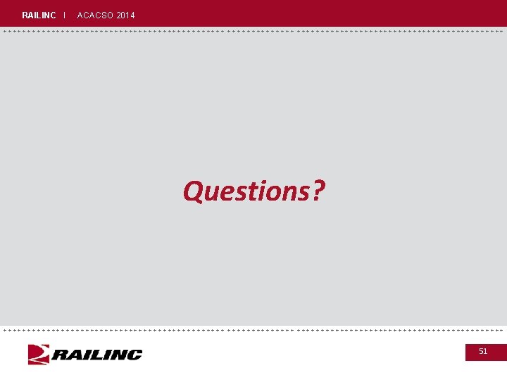 RAILINC I ACACSO 2014 +++++++++++++++++++++++++++++ Learn More About CASS Contact the Railinc Customer Support Center at 877 -724 -5462 (877 -RAILINC) or csc@railinc. com. +++++++++++++++++++++++++++++ 50