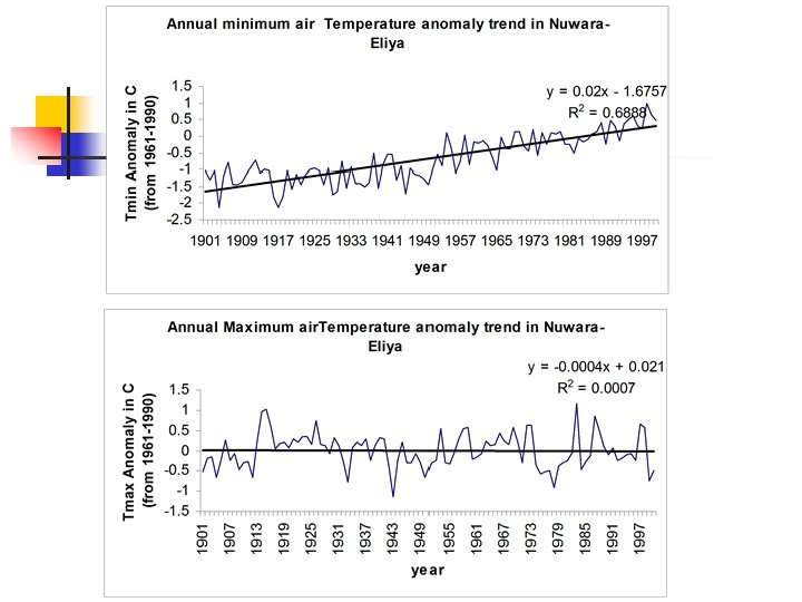 Conclusions n n Projected Mean Temperature increases under different scenarios for different GCM models with varying magnitudes. Projected June Rainfall increases with Had. CM 3 under A 2 Scenario. The increments are much more higher on the western slopes of the central hills (windward side) compared to leeward side.