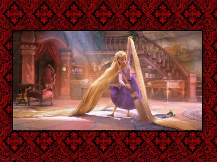 Raiponce avait de longs et merveilleux cheveux qu'on eût dits de fils d'or. En entendant la voix de la sorcière, elle défaisait sa coiffure, attachait le haut de ses nattes à un crochet de la fenêtre et les laissait se dérouler jusqu'en bas, à vingt aunes au-dessous, si bien que la sorcière pouvait se hisser et entrer.