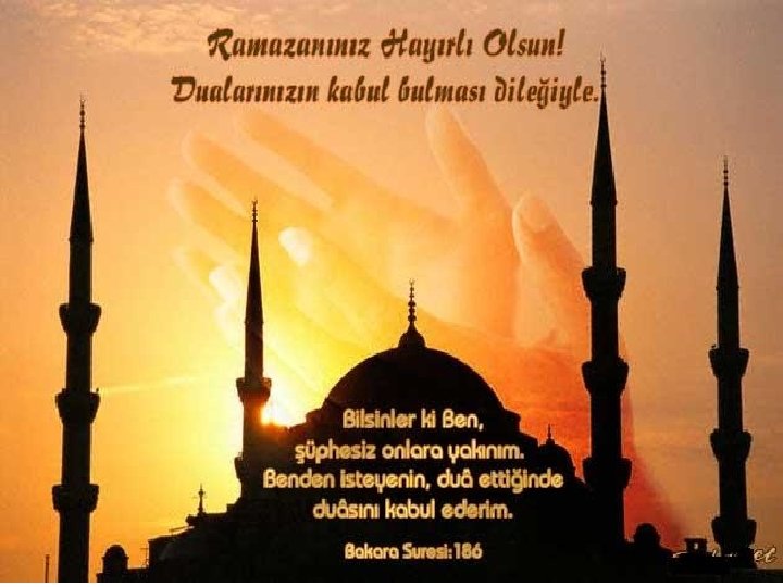 ﺍﻱ ﻳ ﺍﻟ ﺍ ﺍ ﻱ ﻱ ﻳ ﺍ ﻱ ﺍ ﻳﻭ ﻱ ﻭ (Habîbim, yâ Muhammed!) Kullarım sana, ﻭ beni sorduğunda (söyle onlara): Ben onlara çok yakınım. Bana dua ettiği vakit dua edenin dileğine karşılık veririm. O halde (kullarım da) benim davetime uysunlar ve bana inansınlar ki doğru yolu bulalar. (Bakara, 186)