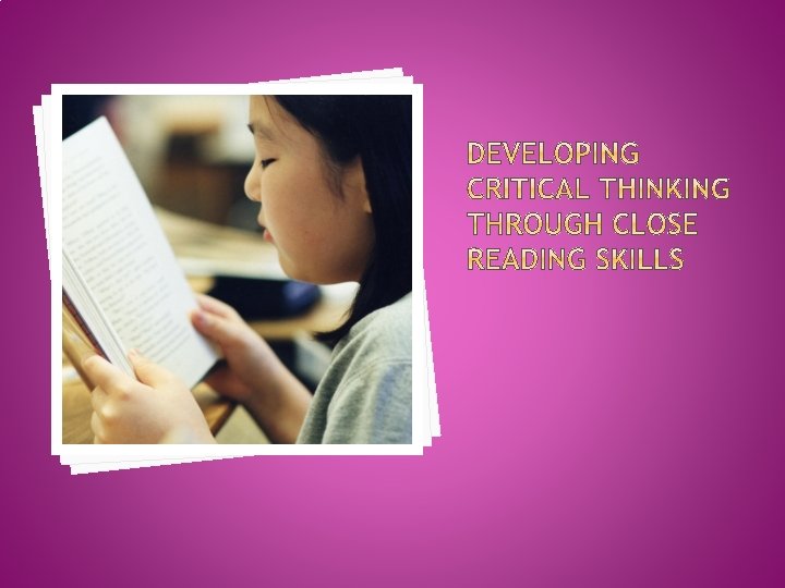 � Question: How do you currently encourage close reading of texts? � Question: What are some of the attributes characteristic of strong readers or thinkers? � Metacognition—they think about their thinking � They use background knowledge � They make connections � They visualize � They ask questions � They make inferences � They make predictions � The evaluate and challenge the text/author/ideas � They create new understandings—synthesize