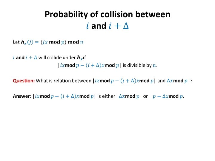 Universal Hash Family • This definition appears strange in the beginning! But we shall soon see that there is a very natural way to arrive at this definition.