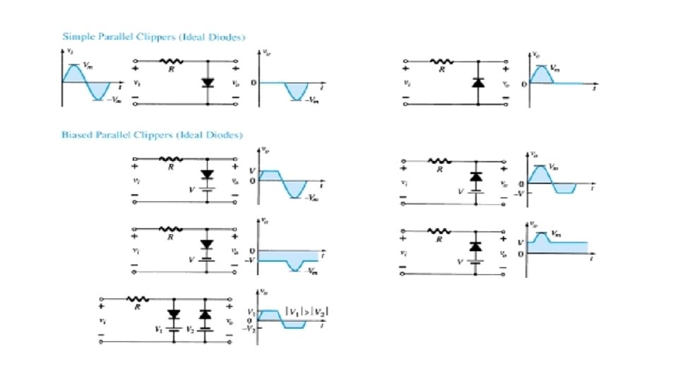 q Rangkaian Clipper Pararel üPada rangkaian clipper pararel, dioda dipararelkan dengan tegangan keluaran (Vo). Rangkaian clipper pararel yang paling sederhana seperti yang ditunjukkan pada Gambar 9. Rangkaian clipper pararel Gambar 10. Tanggapan sinyal clipper pararel