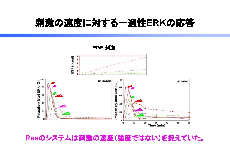 持続性ERKの活性化 複雑モデル ERK: NGF (Rap 1) 実験結果 ERK: p. Trk. A ERK: EGF (Ras) ERK: p. EGFR