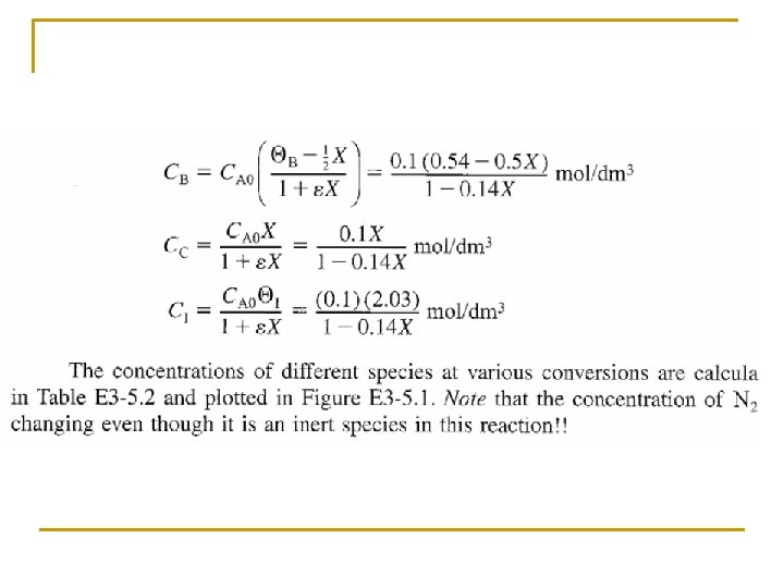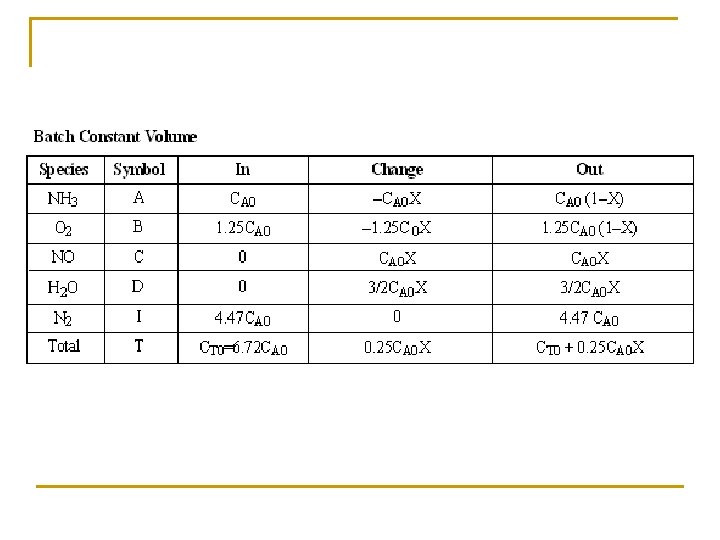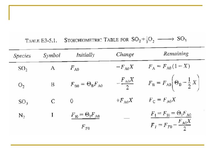 Stoichiometric Table species Entering change leaving A FA 0 -FA 0 X I FA 0 - F A= FA 0(1 -X) FI=FA 0 A 3 - FA 0 X/3 F A= FA 0(1 -X) FI=FA 0 FA 3= FA 0 X/3 (y. A 3)(FT) FT = FA(2 -2 X/3)