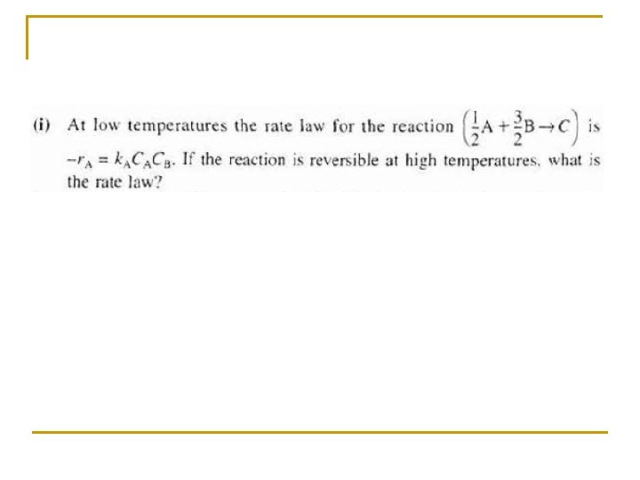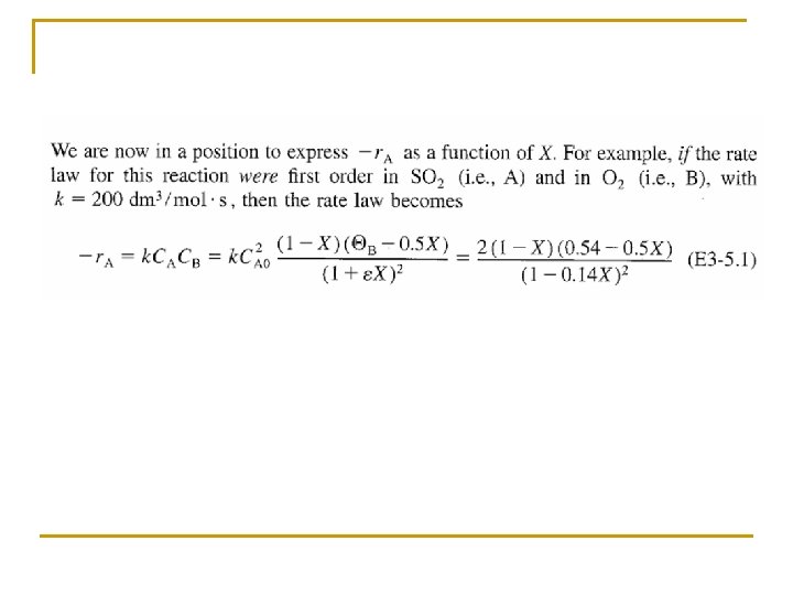 Why a Rate Law? n n n If we have Then we can size a number of CSTR and PFR reaction systems To find -r. A= f(X) 1) Need the rate law, -r. A=f(CA, CB) 2) Need the reaction stoichiometry, CA=CA 0(1 -X) X
