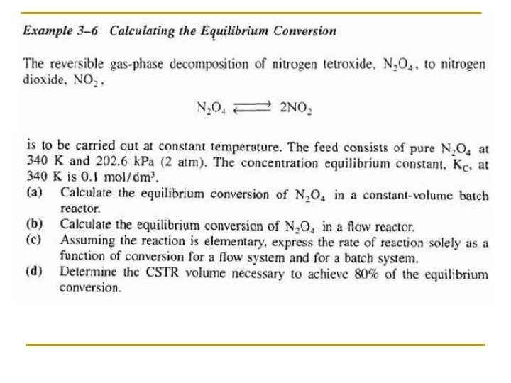 P 3 -13 n n n The formation of nitoanalyne is formed from the reaction of ONCB and ammonia. The liquid phase reaction is 1 st order in both reactants with k=0. 0017 m 3/kmol. min at 188 C and activation energy = 11. 2 kcal/mol The concentrations of nitoanalyne and ONCB are 1. 8 and 6. 6 kmol/m 3 respectively.