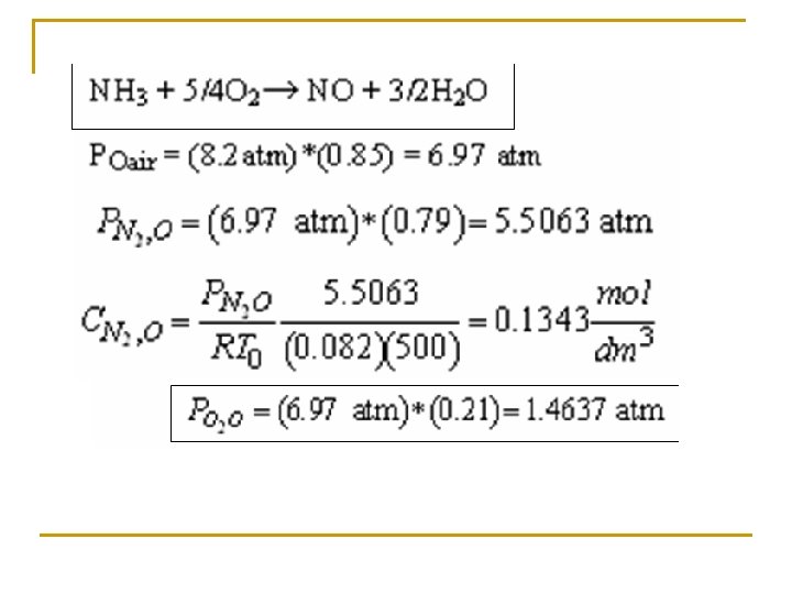 Example: Production of Nitric acid q Nitric acid is made commercially from nitric oxide. Nitric oxide is produced by the gas-phase oxidation of ammonia. 4 NH 3 + 5 O 2 4 NO + 6 H 2 O q The feed consists of 15 mol% ammonia in air at 8. 2 atm and 227°C.
