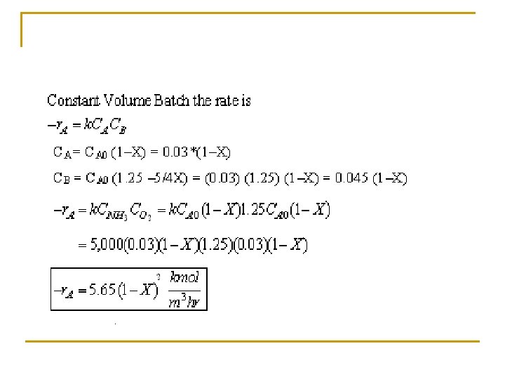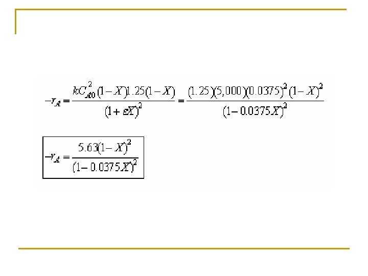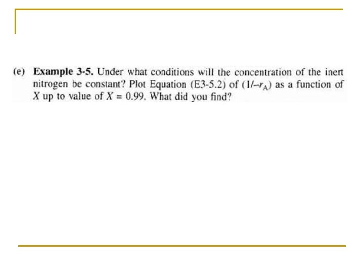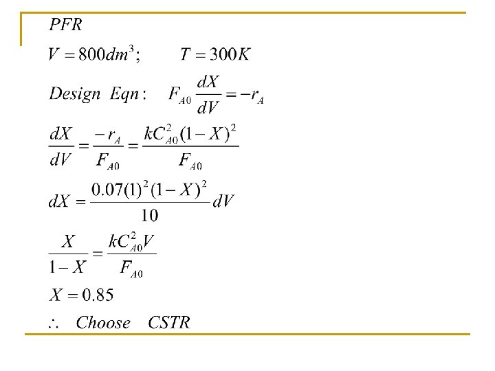 Given information Ø Ø Ø Ø CA 0=CB 0=2 mol/dm 3 v. A=v. B=5 dm 3/min k 1=0. 07 dm 3/mol. min EA=20 kcal T 1=300 K Rate law: k. CACB, CA=CA 0(1 -X) Cj=FJ 0/Vj