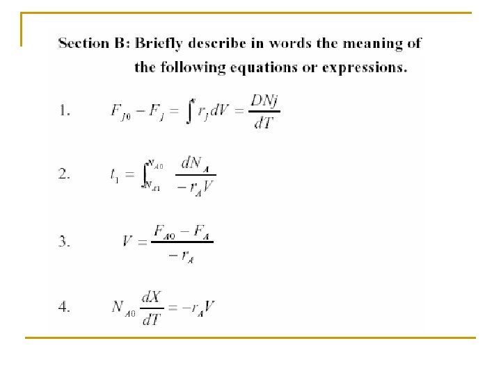3. What does the mole balance for a CSTR become if rj = - k. Cj? A. Cj = (Fjo-Fj)/V B. too complicated… C. V = (Fjo – Fj)/(k. Cj) D. V = (Fjo-Fj)/k