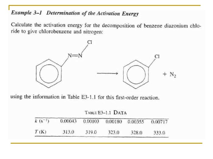 Example Consider the following elementary reactions 1) Which reaction has the higher activation energy? 2) Which reactions have the same activation energy? 3) Which reaction is virtually temperature insensitive? 4) Which reaction will dominate (i. e. take place the fastest) at high temperatures?