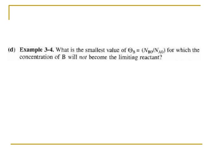 P 3 -13 b Setup a stoiciometric table for flow system Species Entering Change Leaving A FA 0 -FA 0 X FA 0(1 -X) B FB 0=ΘBFA 0 -2 FA 0 X =(6. 6/1. 8)FA 0 FB= FA 0(ΘB-2 X) C 0 FA 0 X FC=FA 0 X D 0 FA 0 X FD=FA 0 X