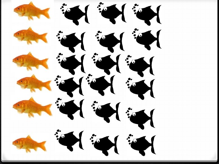 Proportion compares part in relation to whole. How many fish are there in total? The proportion of gold fish out of this total is 6. 6 out of 24. 6/24 Simplify this! ¼ What is that as a percentage? As a decimal?