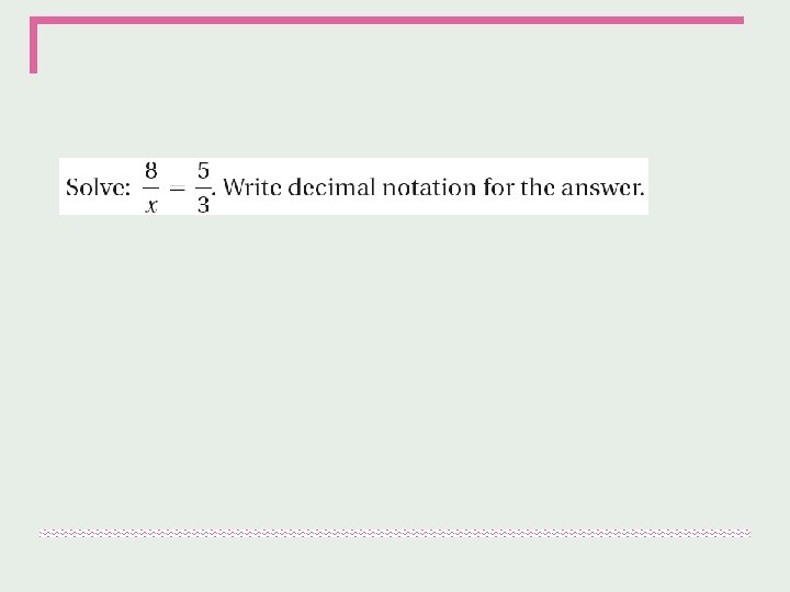 Example 1 Example 2 A rectangle has length of 8. 5 in and width 3. 5 in. Find the ratio of length to width as a fraction reduced to the lowest terms. Slide 6