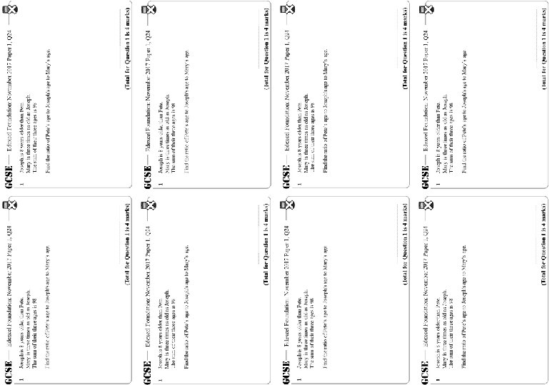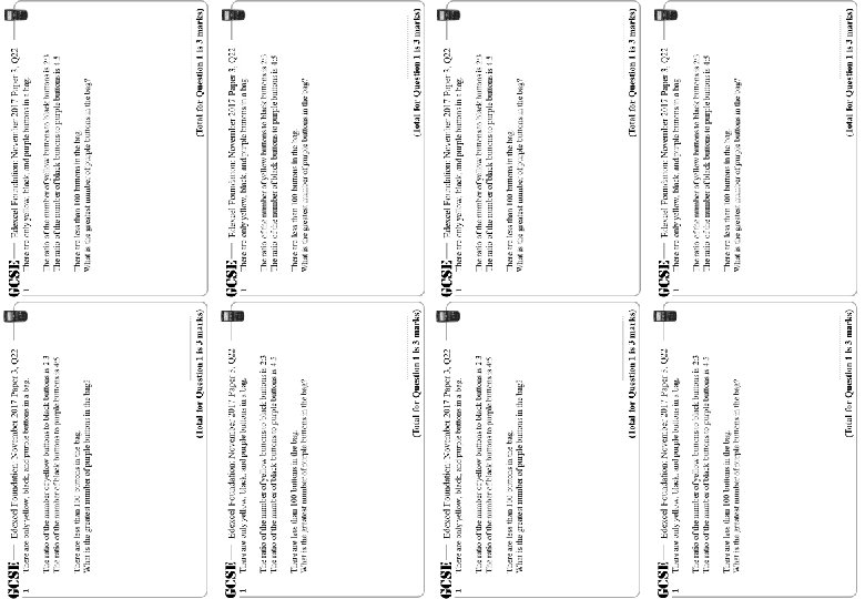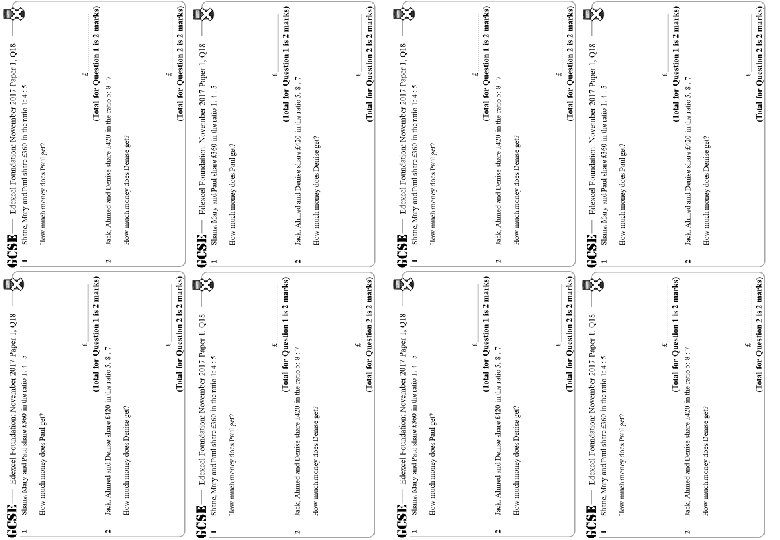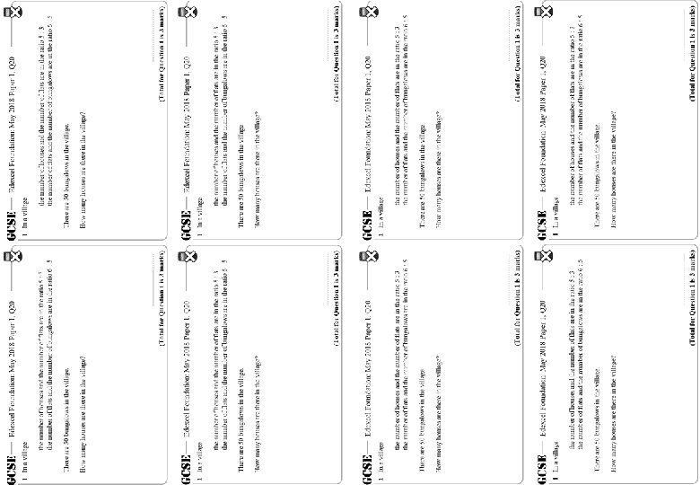 Ratio – Mixed – Foundation – Higher – GCSE Questions These questions are the same format as previous GCSE exams. COPY means they use the exact same numbers as the original GCSE question. Otherwise, they are clone questions using different numbers. The worksheets are provided in a variety of sizes.