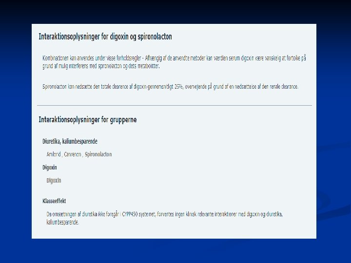 INTERAKTIONER A Digoxin NSAID B Furosemid Verapamil Diltiazem Prednisolon EFFEKT Øget effekt af A