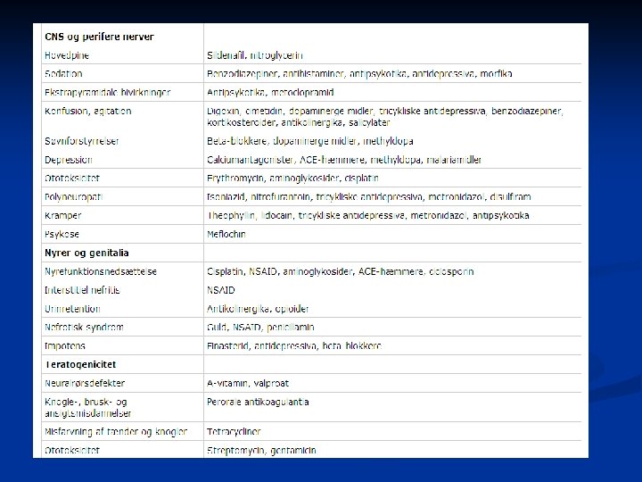 REDUKTION AF DOSIS? Digoxin Aminoglykosider SSRI Antipsykotika Analgetika Insulin Antihypertensivum