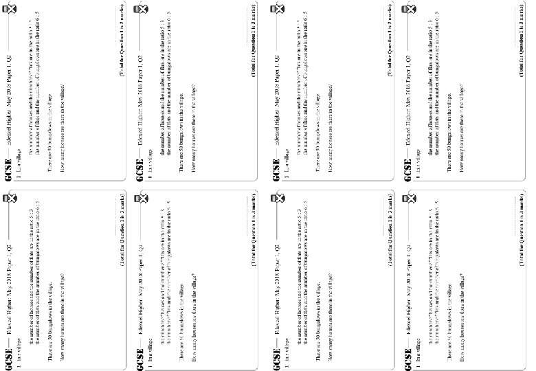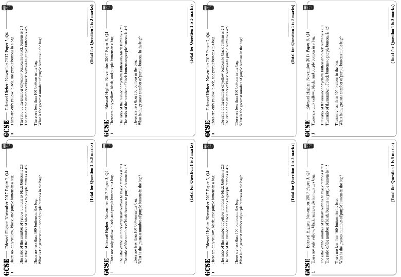 Ratios – Combining – Higher – GCSE Questions These questions are the same format as previous GCSE exams. COPY means they use the exact same numbers as the original GCSE question. Otherwise, they are clone questions using different numbers. The worksheets are provided in a variety of sizes.