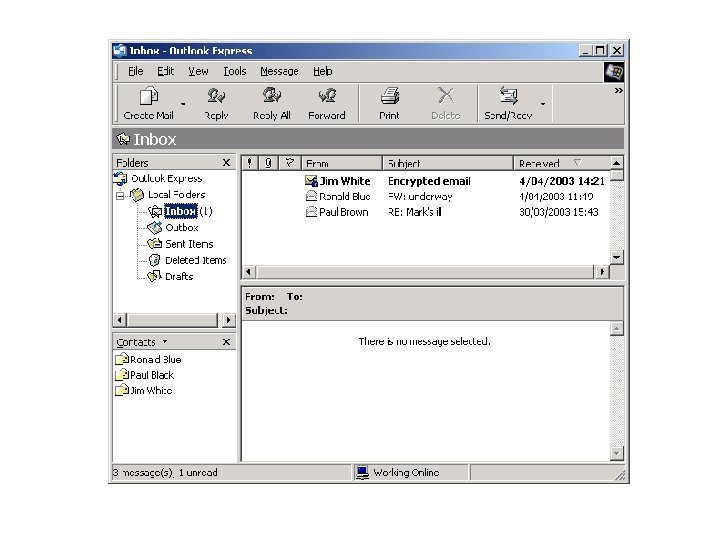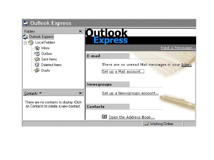 Outlook Express • To je program za rad sa elektronskom poštom • Uključen je u operativni sistem Windows-a • Pokreće se iz menija na: Start-> Programs