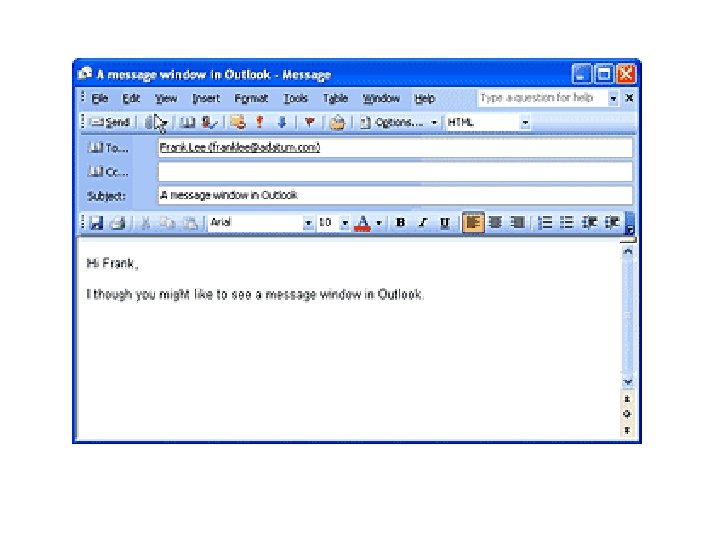 Struktura elektronskog pisma • Adresa (adrese) primaoca • Predmet poruke (subject) • Tekst poruke • Potpis (signature) • Prilog (attachment)