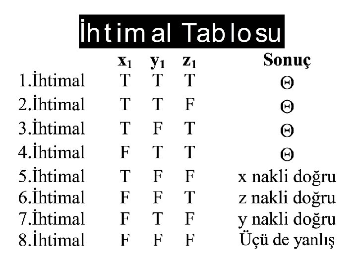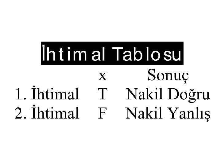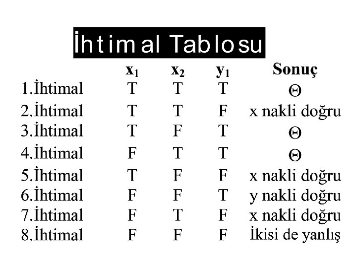 1/2 Tanık T sonuç: doğru 1/4 F 1 sonuç: yanlış 1/2 1/8 1/4 Tanık değil F 2 a sonuç: yanlış 1/16 F 2 f sonuç: yanlış 1/8 F 2 b 1/16 F 2 t sonuç: doğru