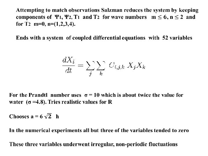 Inspired by Salzman, Lorenz (1963) makes the radical assumption that the solutions can be obtained if the series is truncated to include only 3 variables. Selects m=1, n=1 for the real parts of Ψ and T, and m=0, n=2 for the imaginary part of T: