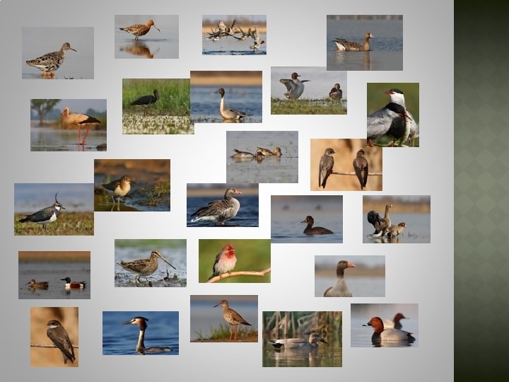 Kropiatka Derkacz Podróżniczek Bączek Bielik Błotniak stawowy Błotniak łąkowy Czajki Zielonka Żuraw Rybitwa białowąsa Rybitwa czarna Wodniczka Kulik wielki Gęgawy Rycyki Krwawodzioby