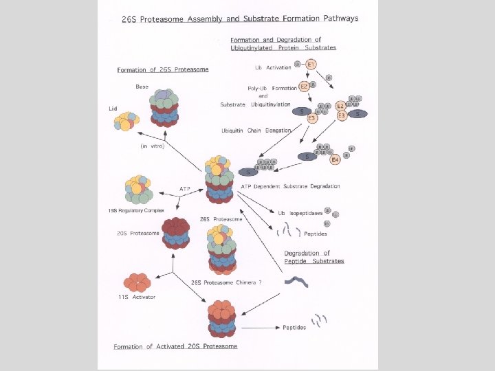 Znotrajcelična razgradnja: - v lizosomih (nespecifična razgradnja) - v citosolu (razgradnja z Uq označenih proteinov v proteasomu; od ATP odvisni mehanizmi) Lizosomska razgradnja: predvsem zunajcelični proteini, ki vstopajo z endocitozo, sodelujejo pa tudi pri avtofagocitozi (fuzija z fagosomi; = avtofagija). Citosolna razgradnja: predvsem za znotrajcelične proteine, ki so nepravilno zviti ali označeni za razgradnjo kot posledica fosforilacijskih signalnih kaskad. http: //hyperphysics. phy-astr. gsu. edu/hbase/biology/imgbio/lysosome. gif