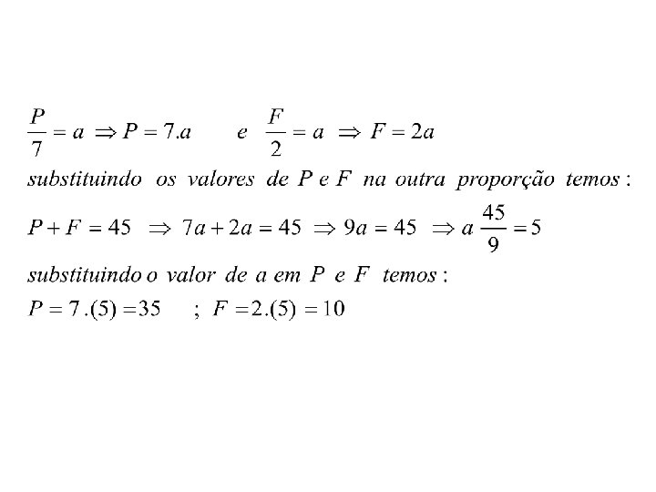 3) A soma da idade do pai e do filho é 45 anos. A idade do pai está para a idade do filho, assim como 7 está para 2. Determine a idade do pai e do filho.
