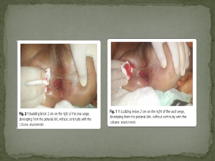 Conclusion: �La récidive sur une plaie périnéale induite par un écarteur anal est rare certes, mais possible. D’autres études sont recommandées, afin de définir des mesures préventives capables de réduire les implants cutanés.