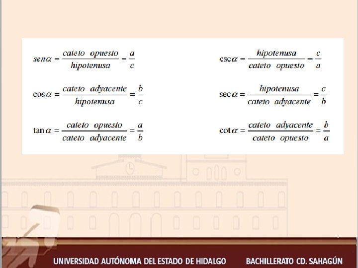 ÁREA ACADÉMICA: Matemáticas TEMA: Razones trigonométricas PROFESOR: Mtra. Diana A. Romero Fuentes PERIODO: Enero – Junio 2017 TEACHER: MTE. HEIDI ZAMORA NAVA SEMESTER: January – May, 2015