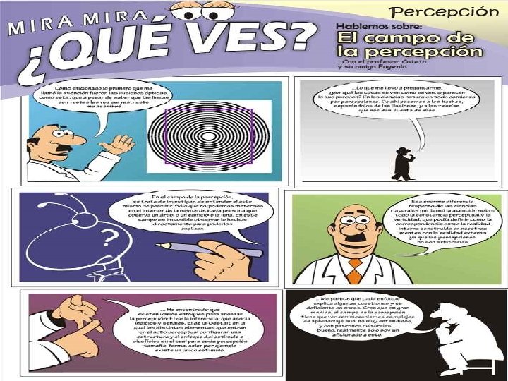 “Percepción ” Proceso cognoscitivo que permite interpretar y comprender el entorno, selecciona y organiza estímulos del ambiente para proporcionar experiencias significativas a quien los experimenta. La percepción incluye la búsqueda de la obtención y el procesamiento de información. Abstract Cognitive process that allows us to interpret and understand the environment, selects and organizes environmental stimuli to provide meaningful experiences to those who experience. Perception includes the search for obtaining and processing information.