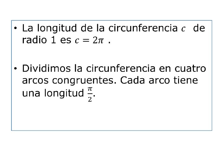 • Un ángulo llano mide radianes. • La circunferencia completa mide 2 radianes.