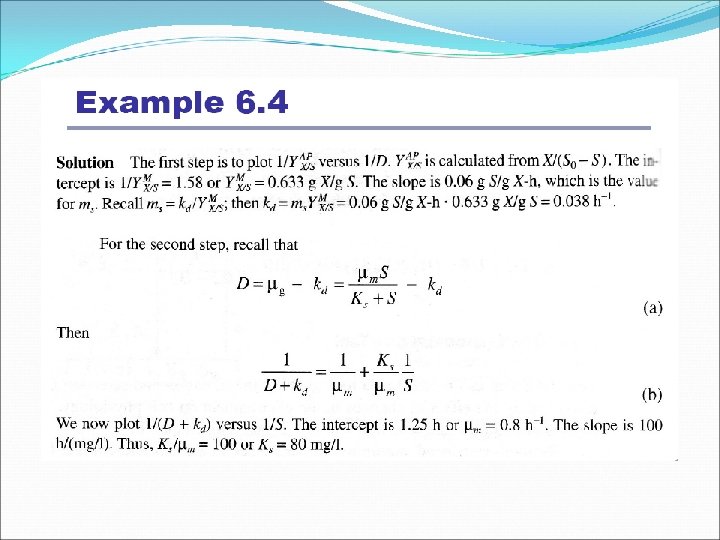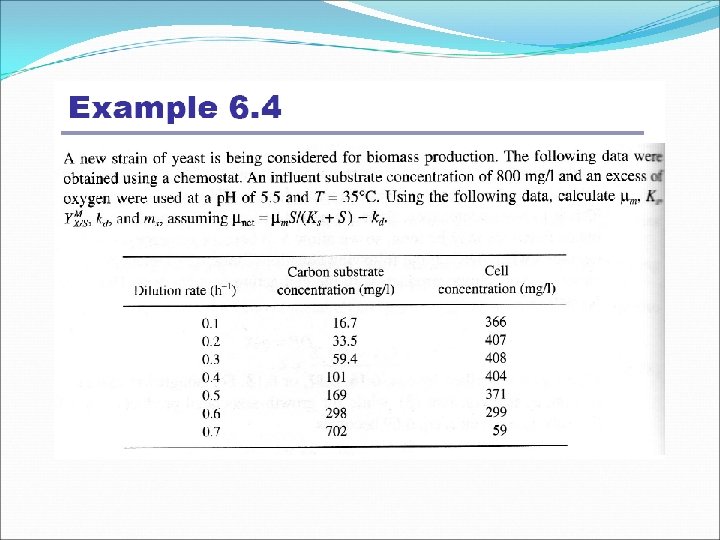 Class Exercise Problem 6. 17 E. coli is cultivated in continuous culture under aerobic conditions with glucose limitation. When the system is operated at D= 0. 2 hr-1, determine the effluent glucose and biomass concentrations assuming Monod kinetics (S 0 = 5 g/l, mm= 0. 25 hr-1 , KS = 100 mg/L, Y x/s = 0. 4 g/g)