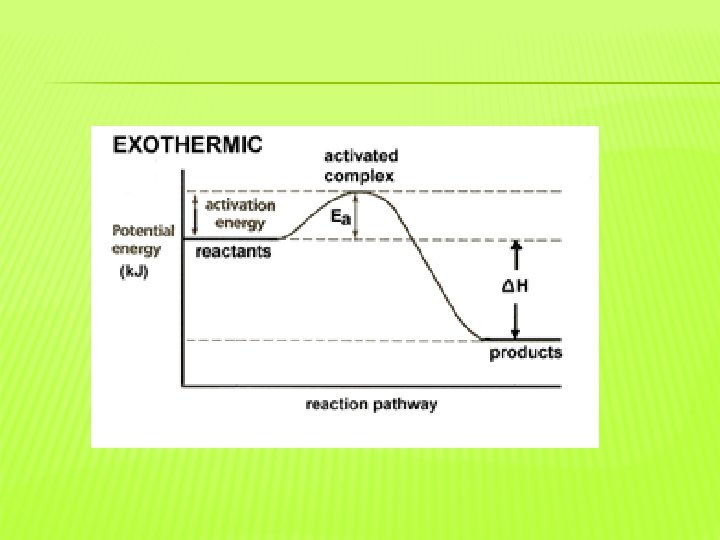 �An exothermic reaction releases heat. �Therefore, the products have less energy than the reactants. �An endothermic reaction absorbs heat. �Therefore the products have more energy than the reactants.