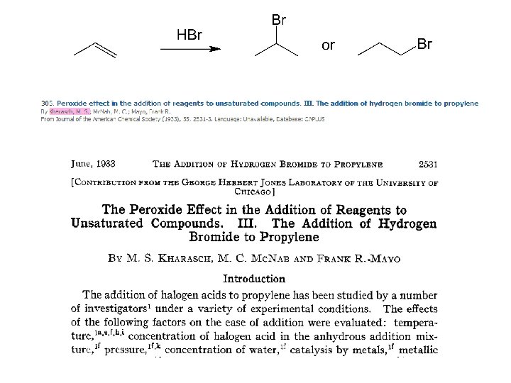 Mechanistic Reason for Effect of Peroxides on the Regiochemistry of Addition of H-Br to the alkene