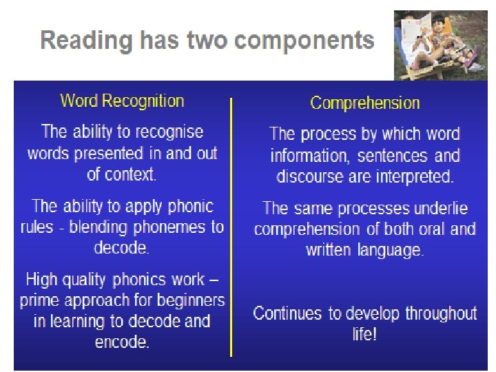 Children with dyslexia or learning difficulties Children learning English Children with communication difficulties