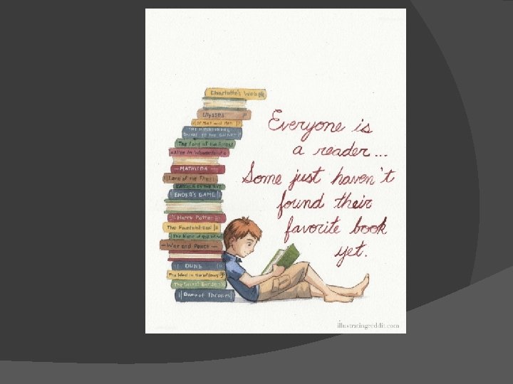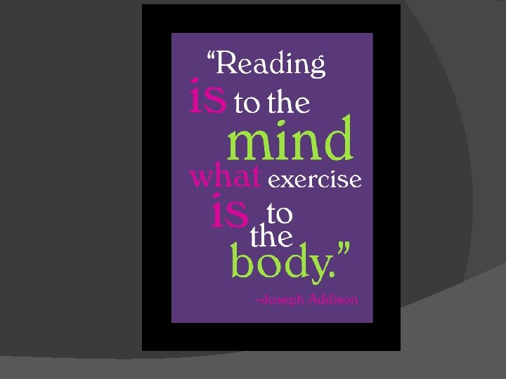 Reading is: q ü ü ü More than calling words Necessary for living/existing NOT going away Required for everyone Not always liked by everyone Takes you places, lets you experience things, and learn new things.