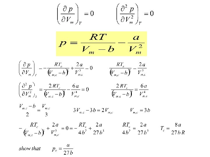Van der Waal’s Equation Ideal gas law needs modification: - Let’s consider the molecular volume: b: size of 1 mole of gas molecules For 1 mole of gas: Vm, total = Vm, space + b