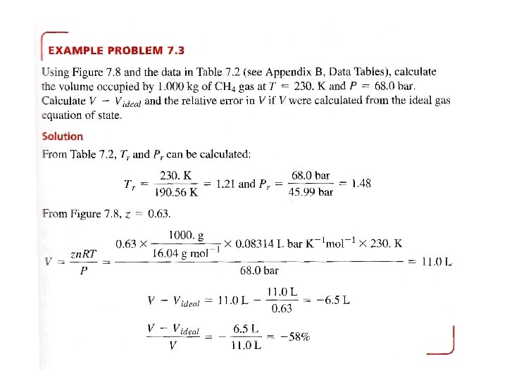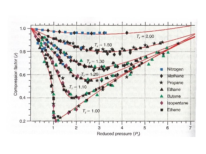 • Two gases at the same Tr and pr have the same Vr. • These two gases are in “corresponding states’’. • Ar (302 K and 16 atm) ↔ ethylene (381 K and 18 atm)