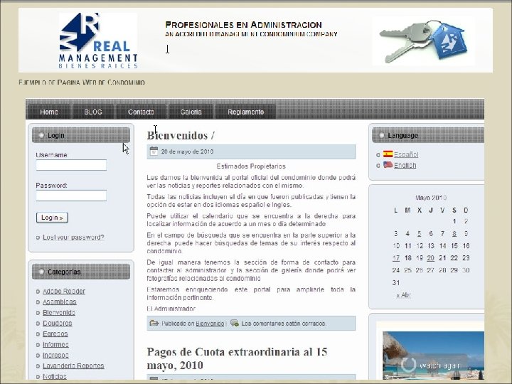 Pantalla de software de administración de condominios propio de Real Management