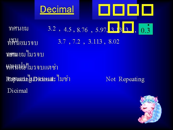 Integers Numbers they are … -3, -2, -1, 0, 1, 2, 3, … Symbol ( I ) Rational Numbers Symbol (Q) Integers Numbers and Fractions -1 , 6 , 0 , 8 , 3. 12 , 0. 121212… , 1. 08 -3. 55 , 4. 353535… , 5. 9