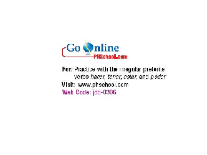 Irregular verbs in the preterite: venir, poner, decir and traer Un repaso de estar, poder, tener, hacer (see Capítulo 3 A , page 142) Study guide / Worksheet / Powerpoint