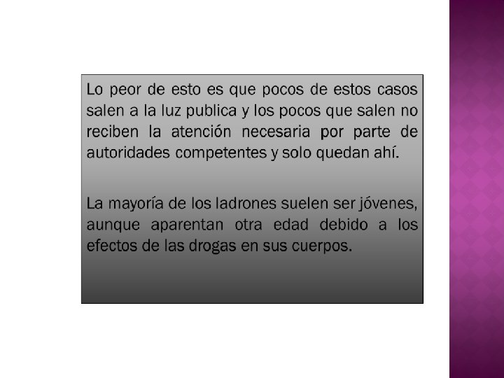 El efecto de la droga en la sociedad En nuestra sociedad, el consumo de las drogas en los jóvenes, el cual afecta considerablemente su desarrollo emocional, intelectual, físico y afecta también la constitución familiar. Por ello, describiremos las causas de las drogas y los efectos que éstas pueden producir en un joven.