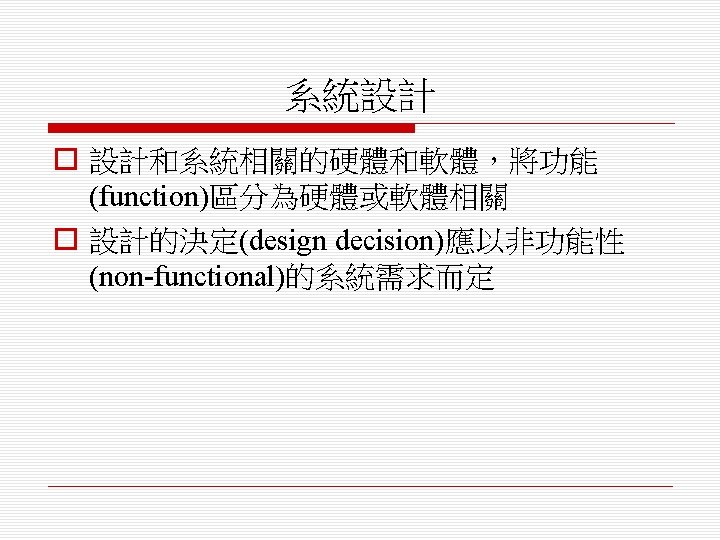 參考資料 o Ian Sommerville, Software Engineering, 7 th ed. , Addison-Wesley,2004.