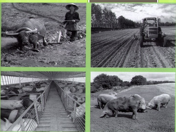 Reasons For Food Crisis 1. Low level of agricultural technology The second way (B) classifies farming as either Intensive or Extensive farming: B 1. Intensive Farming: involves farming on small amounts of land. The farming is concentrated and labour intensive as well as technology. Growing fruits and vegetables, vineyards, and livestock in Canada in an example. B 2. Extensive Farming: involves large amounts of land with limited amounts of labour. Machines do most of the work. Grain farming in Western Canada is a good example. Ranching is also considered extensive farming
