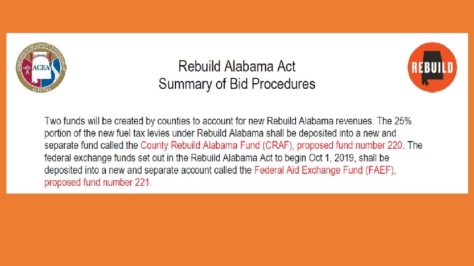Rebuild Alabama Implementation and Accounting Richie Beyer, Elmore County 2019 ACCA Annual Conference