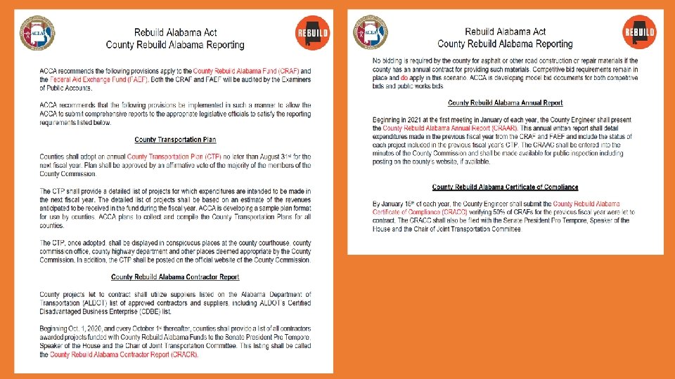 County Rebuild Alabama Bid Guidance 2020 ACCA Joint Bid Items • • • Debris Services Heavy Equipment Metal Pipe Herbicides Road Signs • Portland Cement • Liquid Asphalt (CRS-2 & CRS-2 P)